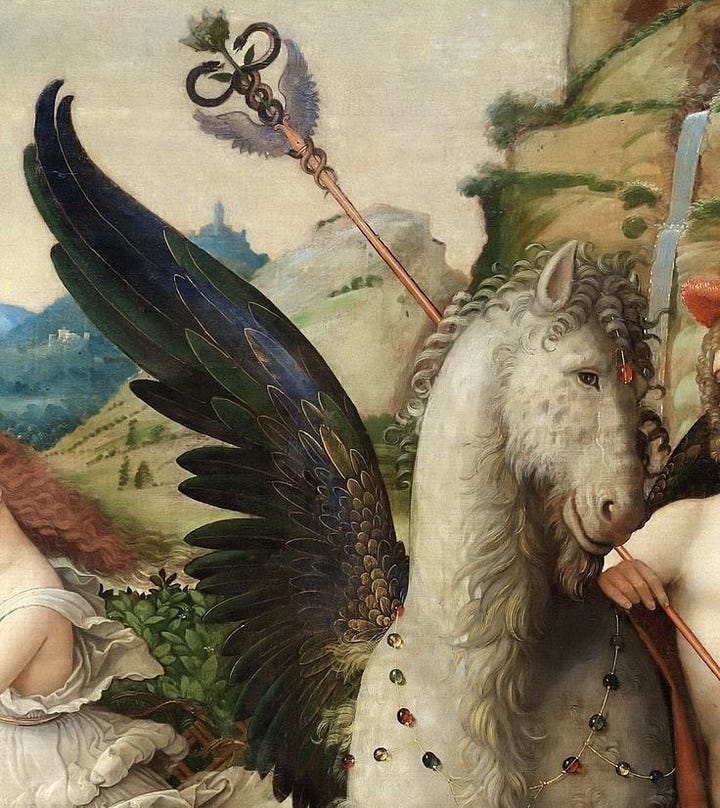 Andrea Mantegna (1431-1506) - Parnassus, Detail of Pegasus and Mercury.